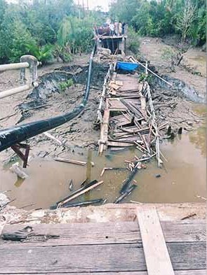 Mendengar bunyi tersebut, Sontak Amril mengejar ke tempat dia berkerja tadinya, dan ternyata jembatan sudah ambruk ke dalam sungai. Diperkirakan panjang jembatan yang runtuh, lebih kurang 20 meter.(dow)